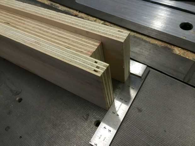 1. Tome dos de 3-3/4 largo. Para obtener la longitud los ponen en lo que será la parte superior y restar dos espesores de la madera contrachapada. Trace una línea. Empotrar y cortar al mismo tiempo si puede con una sierra circular o mitre vio. Ponga a un lado.