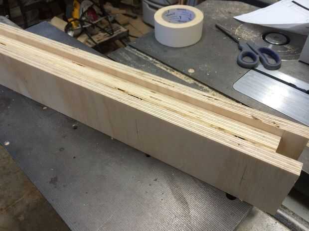 2. soportes de la tubería. Corte 3-3/4 largo en dos piezas 22-3/8 + /. Estos caben debajo de la mesa por lo que su dimensión real es 24" menos espesor de madera contrachapada * 2.