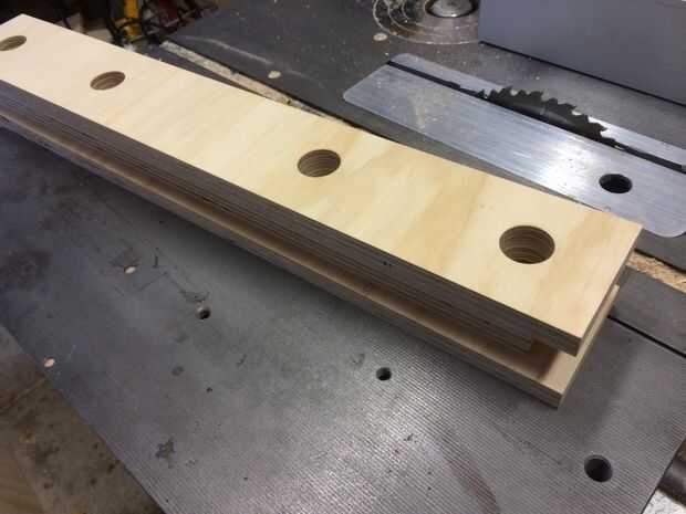 Mis primeros agujeros fueron por conducto de EMT 1". Este material era barato pero mi agujero estaba muy descuidado. Así el aluminio caro. Sin embargo perforados de aluminio 1.25 a través de un orificio de 1-1/4 con broca fostner era demasiado apretado. Terminó usando una broca de pala y algunos lijado.