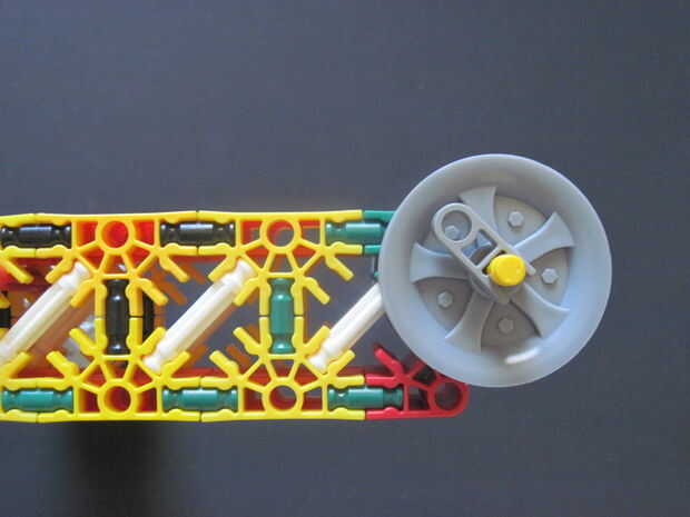Imagen 9: Añadir engranaje pequeño, gris de la rueda (sin neumático), conectores y clip azul metálico.