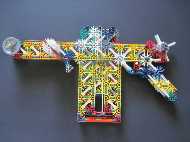 Primer gancho al cortarla con el gancho de goma bajo el cañón, pasar sobre la rueda, a través de la munición de la alimentación y en el rayo del disparador (imagen 2). A continuación, inserte la munición (imagen 1), seguida por el empujador de munición que hiciste anteriormente en el mag. Luego conecte la goma para el empujador de munición como en (imagen 2). Levante el gatillo hasta poner el gatillo y el gatillo para disparar.