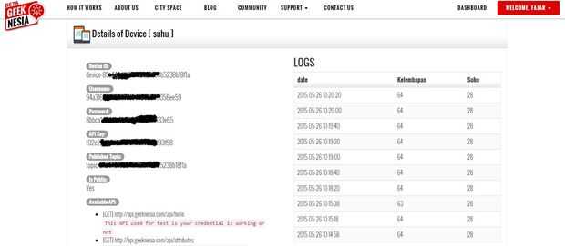 Yeaay tenes algunas letras no identificado!. ID de dispositivo, nombre de usuario, contraseña y API clave son la información de su dispositivo, que usamos en nuestro código de arduino. Mantenerla secreta ok ;). y no olvides descargar el código de arduino por defecto en la página.
