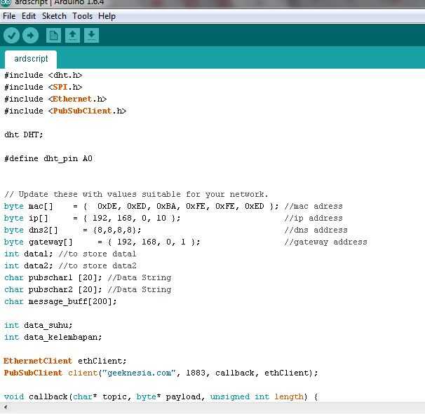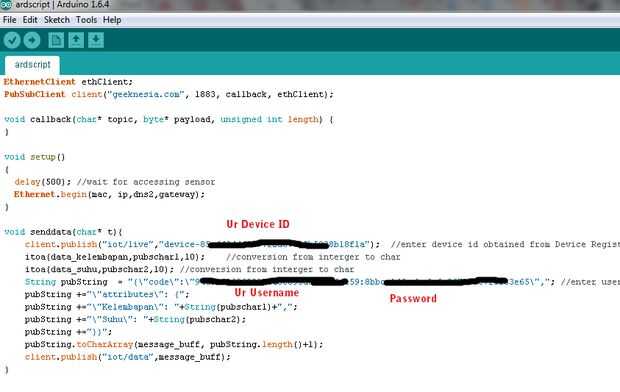 Después de descargar el código en la página web, modificarla. Utilice la información de ID de dispositivo, nombre de usuario y contraseña de geeknesia para modificar el código.