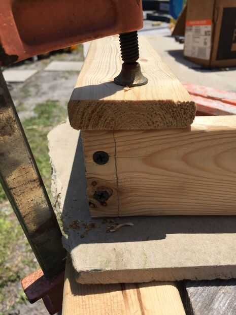 Una vez que el piso estaba en uno uno de los fondos simplemente les apilados todos juntos y funcionó 4 piezas de madera de desecho en el interior juntos.