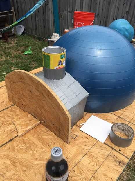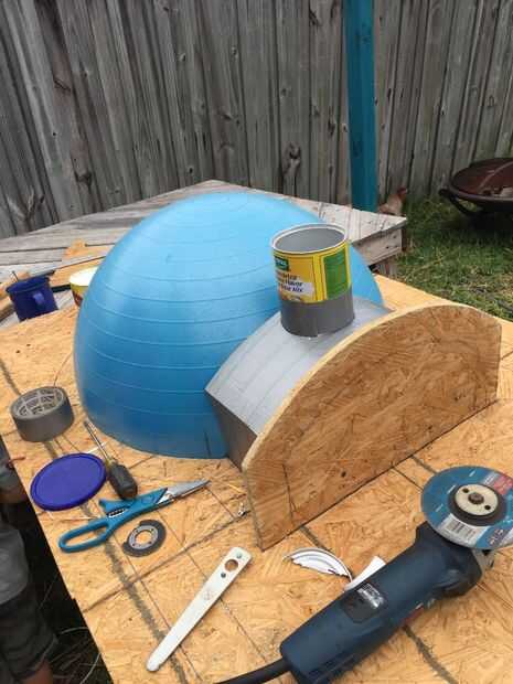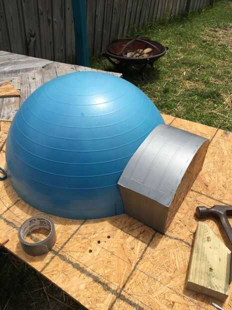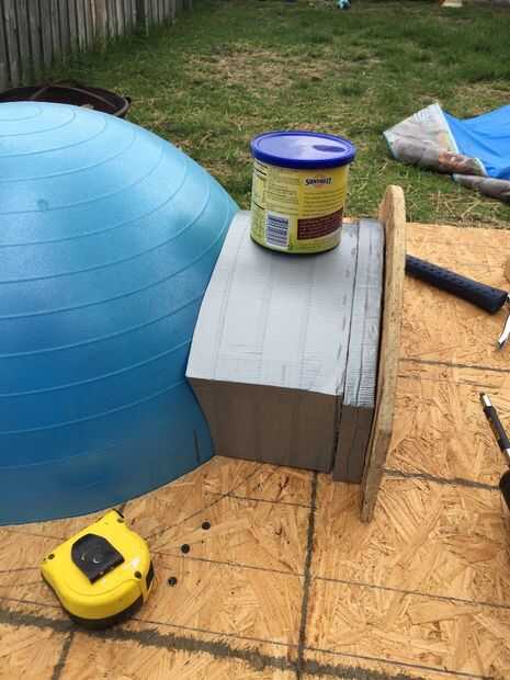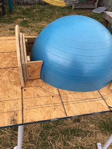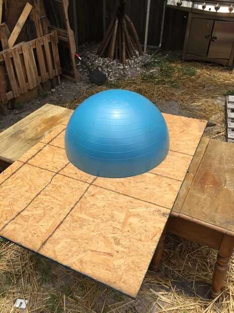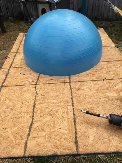 Así que después de inflar mi... WIFES... bola de ejercicio... medido la circunferencia para calcular el diámetro para el círculo cortado. Después de un flash detrás de high School secundaria, usted toma su medición CIR dividida por pie... 3.14 y se le da el diámetro. Corte mi círculo inserta la bola y el BOOM... dentro de la bóveda creada.