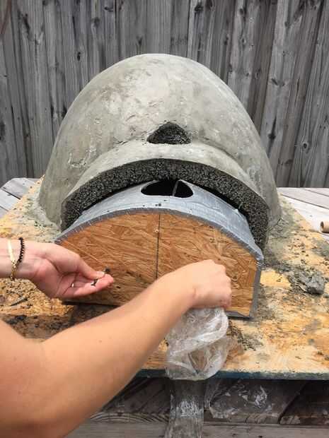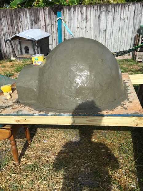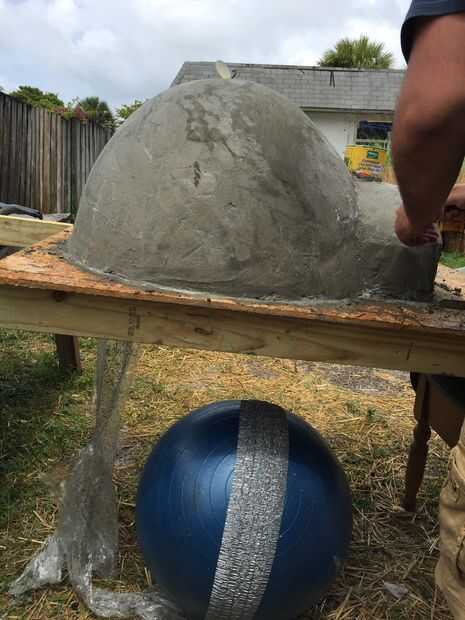 Así que después de que había explicado realmente no podía empujar o compactar la mezcla a agresivamente o solo Daria la bola y rebote. Después de un día de curado he notado una mancha del tamaño de una cabeza de borrador que pude ver la bola a través de la pared. Así que decidí nivelado interior y el exterior. Desnatada en el exterior y después de un día de curado se me quitan los moldes.