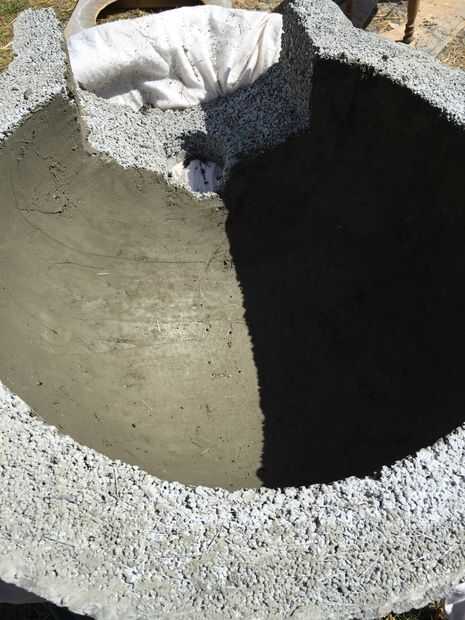 Había estado tratando de averiguar el mejor look para el exterior y después vi los resultados de la mezcla que decidí usar el cemento portland y unas agujas de SS a hojear el interior y exterior. Salió buscando bastante bien. Recuerde, el agua es el enemigo. Utilizar con moderación. Obviamente usted quiere las cantidades apropiadas para crear el cemento a la mezcla óptima, pero trate de no usar mucho agua en suavizar y qué no. Usted encontrará que agua podría hacer más fácil de alisar la superficie, pero el momento en el hormigón (unos 5 minutos después de aplicar) y codo grasa hará lo mismo.
