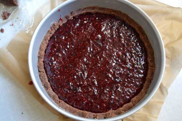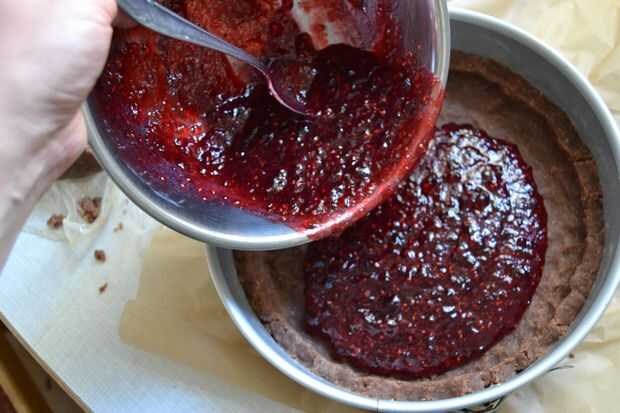 Vierta la mezcla de la mermelada sobre la masa.
