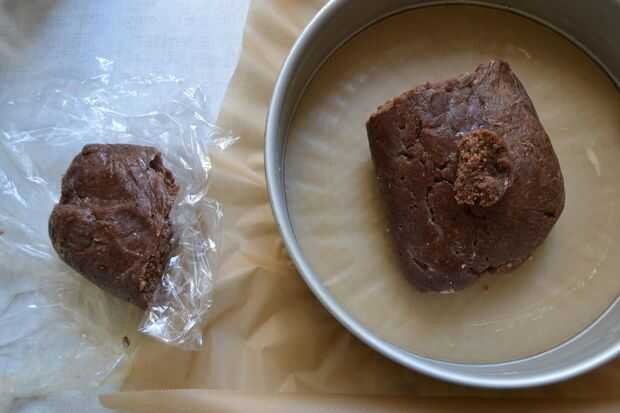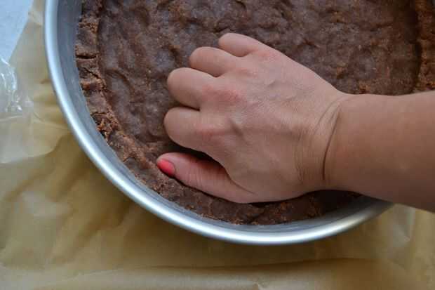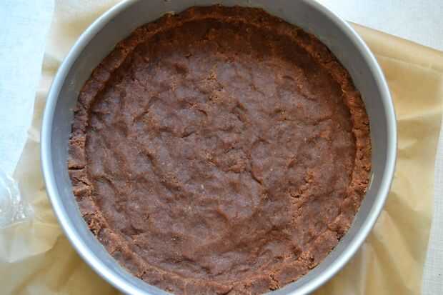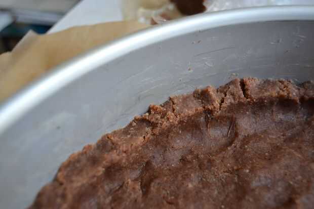 tomar 2/3 - 3/4 de la masa, poner en la sprinform y presione uniformemente alrededor de la parte inferior y forma un borde de unos 3 cm de alto.