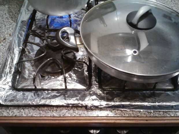 cubierta de la estufa en papel de aluminio, así, cuando tus enchiladas están listos, sólo tienes que quitar el papel de aluminio.