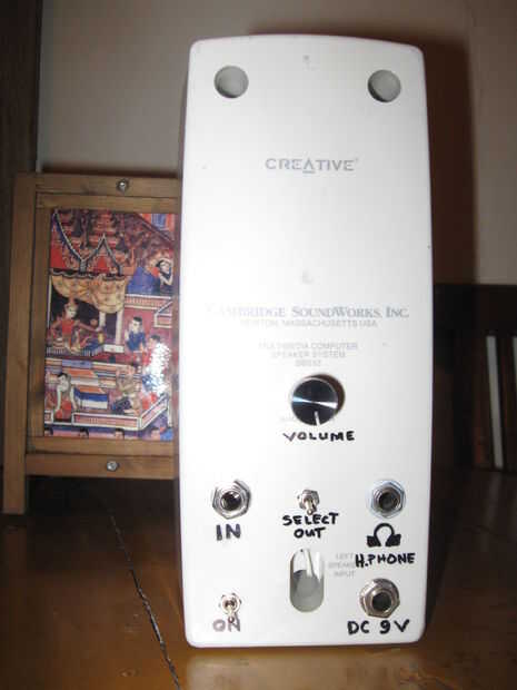 es un amplificador de guitarra portátil en forma de ataúd.Funciona con una pila de 9 voltios, al igual que un pedal de efecto guitarra.Y este amplificador conecta directamente a la guitarra, sin ningún cable,por lo que es muy fácil de usar mientras q