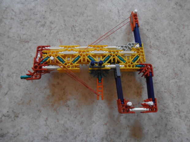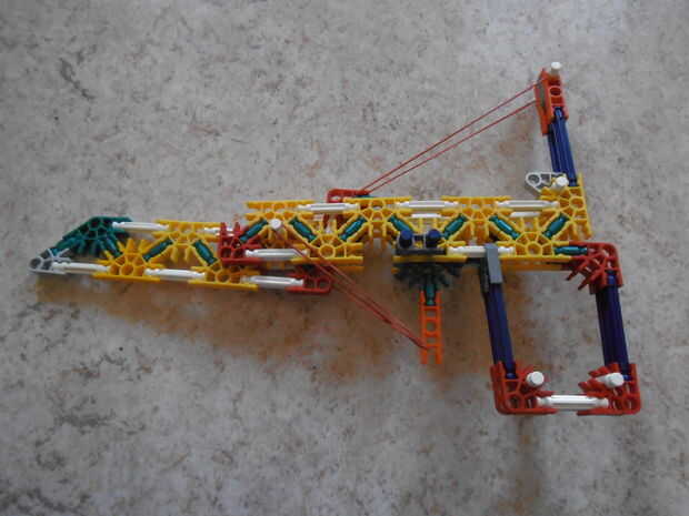 Cuando el gatillo, un alto K' nex hoja laeve y golpee la cosa en el frente de la pistola!