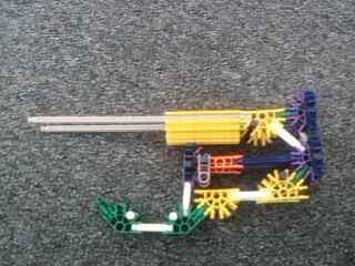 una muy fácil de construir K'NEX arma utilizando sólo piezas básicas y cortarla sorprendentemente fuerte y extremadamente potente. Esto puede ser un juguete pero es mucho más poderoso que su pistola de media así que ten cuidado con él.Tiempo: aproxim