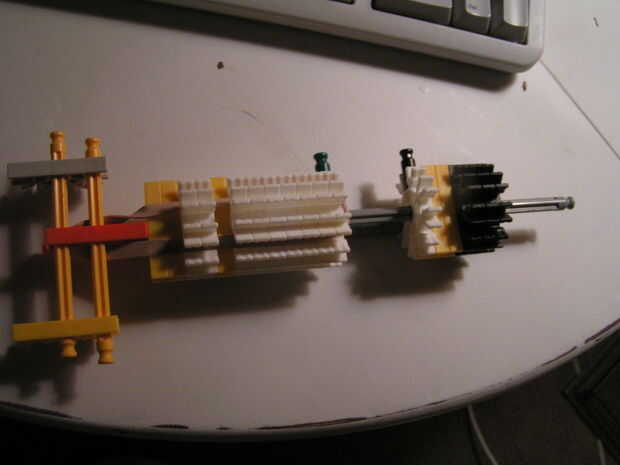 arma muy agradable que no utiliza demasiadas piezas.Pro:muy potentebastante exactacómoda manijaContras:gatillo simple bloqueel mango es un poco endeblePaso 1: El mango una manija cómoda, usted puede fácilmente construir en las fotos.Paso 2: barril se