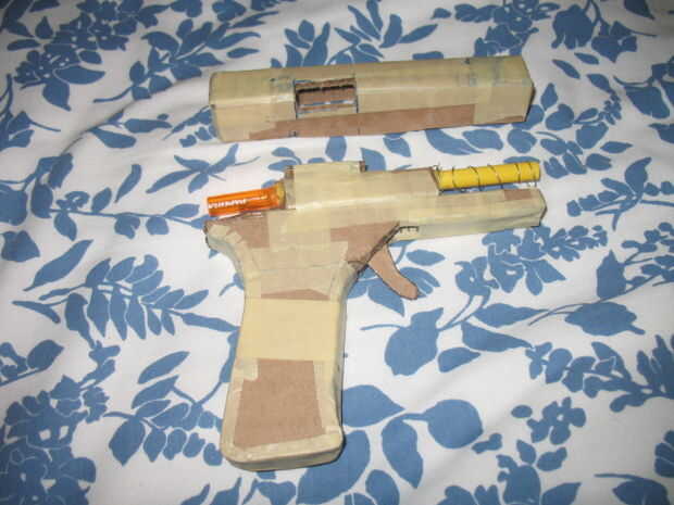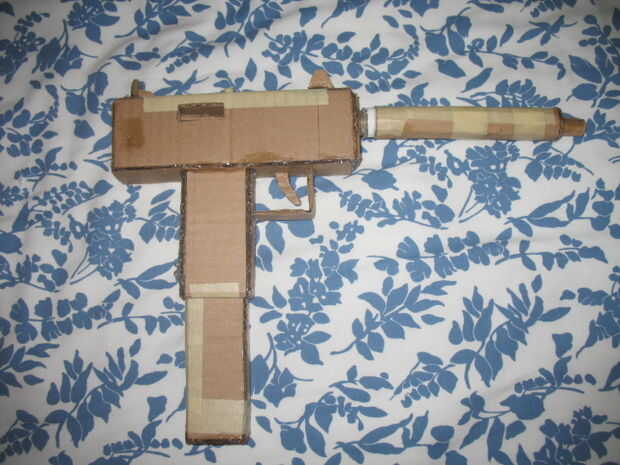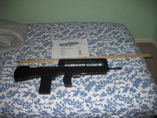 I made some cardboard weapons from... cardboard and decided to post them here. Echale mi Famas me llevó durante dos días para hacer. Planeo hacer más armas bullpup como el QBZ-95 rifle Steyr Aug. Si tienes sugerencias para armas de fuego, eres REAL y no de juegos, por favor, publica a continuación. NO tiran, aunque cuando se trata de más podría tratar hacerlas disparar. Lo sentimos, no puede hacerlos disparar automática si pega un tiro.