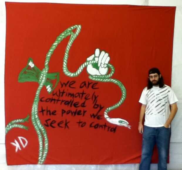 8: pintura de acrílico de la opresión en una sábana (su bruto realmente porque nunca había hecho una pintura grande que antes, la idea principal es el concepto detrás de él)
