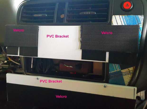 Puse la caja del pvc con el sistema nervioso de mi configuración automatización en la consola central. Después que utilizan dos longitudes de 12 pulgadas de largo cubiertas de pvc trunking asegurar la netbook a la consola a través de un montón de velcro.