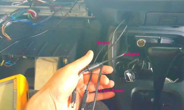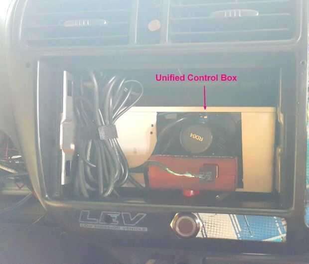 Previamente había marcado con la batería y accesorios cableado utilizado para la cubierta de mi coche. El cableado para aire acondicionado, luces, nivel de combustible, temperatura del motor etc. enrutan a través de la parte posterior de la consola central. Un montón de ataduras de cables se usaron para asegurar el cableado.