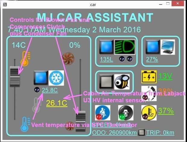La sección de software el termistor de la lectura determinará cuando el compresor enciende o apaga. He creado un control deslizante para ajustar el punto de referencia para el aire de la cabina (de 0 a 20 grados Celsius).