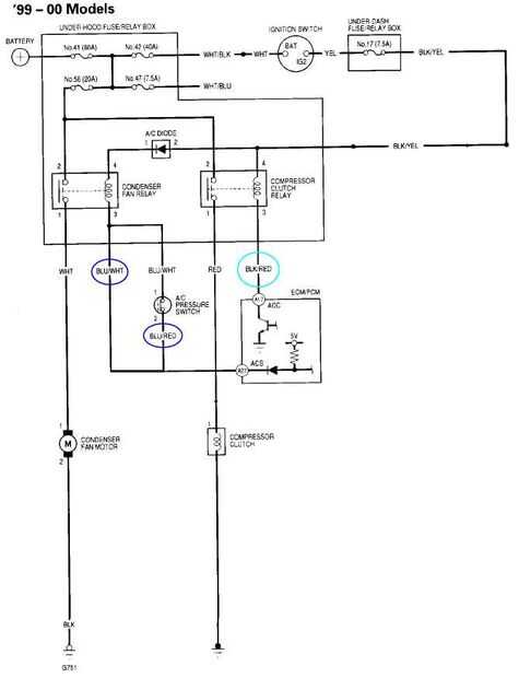 Los cables Blu/blanco y rojo Blu debían ser atados juntos para mi coche para reconocer la AC está en que aumentan las rpm del motor. Usé 2 relés independientes para el ventilador del condensador y el embrague del compresor mediante el envío de los cables marcados a 0 voltios. Un relé no funcionaría ya que el sistema de AC me alojé ON después fue desactivado el relé de control.