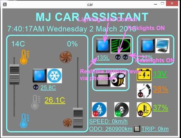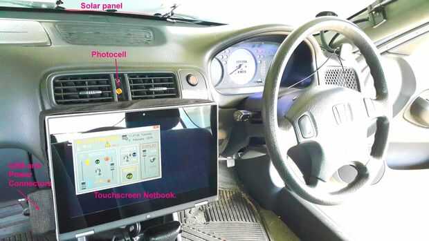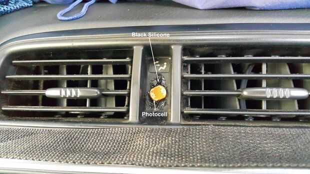 La intensidad de la luz medido usando una fotocélula de sulfuro de cadmio estándar. Esto cabe en el espacio entre ambos respiraderos de dash de centro con la ayuda de pegamento de silicona negra.