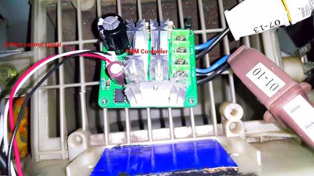 Un controlador de pwm de Amazon.com es lo que yo solía reemplazar el falso controlador que vino con el coche. Labjack u3 que dac0 terminal da salida de 0 a 5 voltios para control, inversamente, la velocidad del soplador.