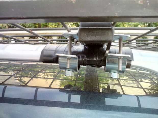 mi SUV Buick no vienen con ninguna barras transversales. Vi una serie en Ebay por unos $120,00 pero aún, tendría que averiguar cómo montarlo en el rack de techo compré. Un viaje a la ferretería y $10.00 más tarde, se me ocurrió con esta configuración