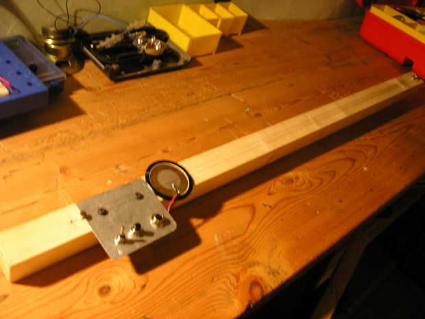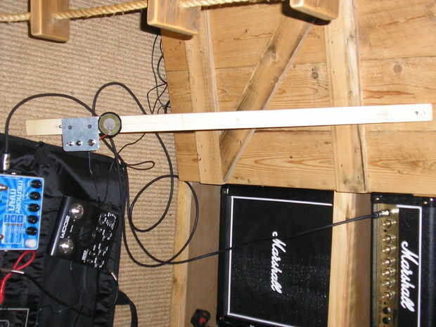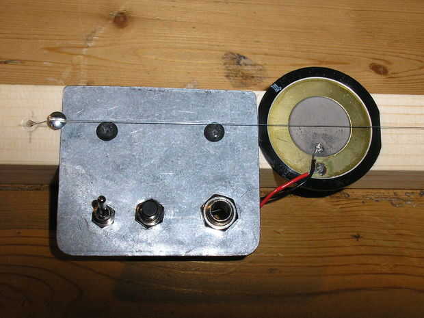hice un bajo eléctrico stick utilizando instrucciones de dos bajo de instructables, el palillo eléctrico, y el altoids guitarra de lata. Utilicé elementos de ambos y subió con un plan para esto. Ha hace lo mismo que el bajo eléctrico stick pero es mucho mayor y tiene un interruptor de corte (conmutación de encendido-apagado) y un corte de interruptor que es momentáneo (normalmente cerrado) que se utiliza para 'tartamudeo' el sonido dentro y fuera.
