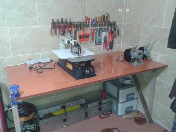 Construí este banco porque mi trastienda pasó de ser sólo un taller a un taller y una sala de lavandería. Así que tuve que construir un banco de trabajo nuevo. Esta mesa de trabajo había estado en mi mente por un tiempo porque pensé que estaba bajo u