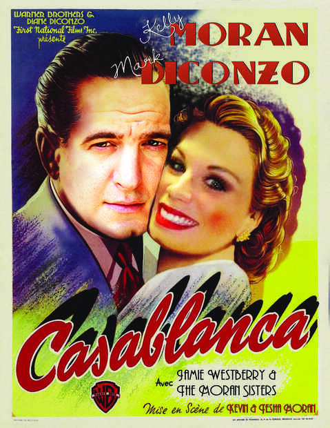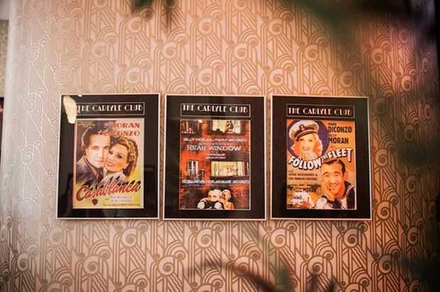 La entrada a la sala de recepción tenía un matiz sutil fresco que cuando sólo estrechamente observado por los invitados llegó a estar claros. Rediseñé carteles de cine clásico con los rostros de la novia/novio y todos los nombres en el cartel fueron reemplazados con los nombres de su boda. Los carteles son Casablanca, la ventana indiscreta y siguen la flota.