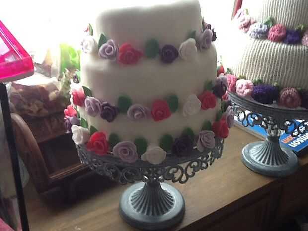 También hice la torta real para emparejar, completar con un montón de hielo rosas y hojas, juego de soportes de la torta y terminar, me ordenó un topper para que coincida con.