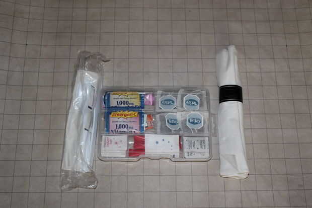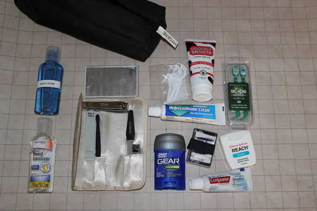 Kit de higiene - 2 oz jabón desinfectante de la mano de 2 oz, 1 espejo, kit de cuidado de 1 uñas (cortaúñas pequeño y grande, archivo de clavo, tablero de esmeril, trimmer de cutícula), 6 selecciones de la seda dental, desodorante, loción para manos, crema de hidrocortisona, 1 kit de costura (3 botones, 4 imperdibles, agujas de coser de 2, 5 colores de hilo), viajes toothbrushed (eliminación), seda dental, pasta de dientes