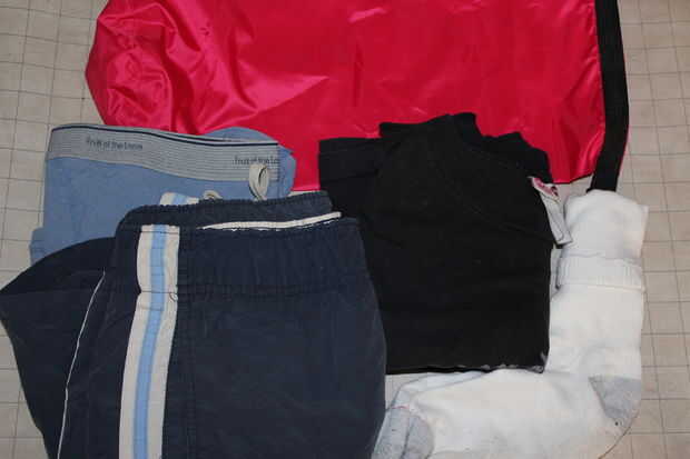 Drybag con un cambio de ropa - camisetas, ropa interior, pantalones cortos (traje de baño realmente), calcetines