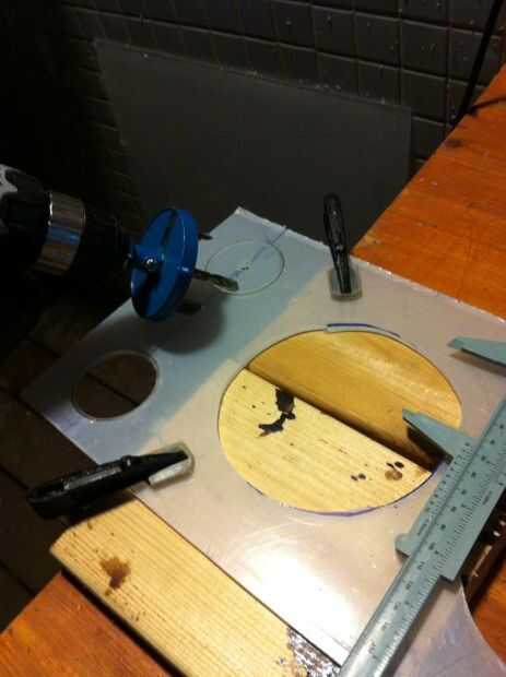 Medir el diámetro interno de los altavoces y en consecuencia la marca con el calibre o alguna otra regla en el plexiglás