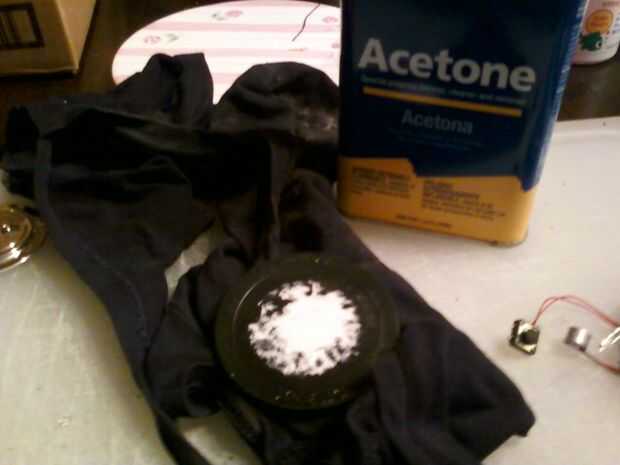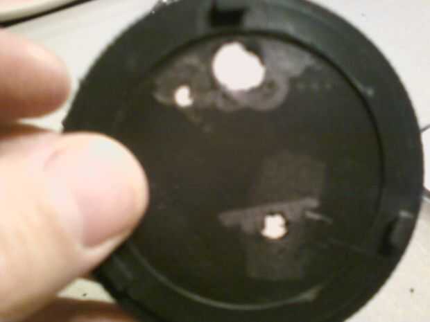 Una vez que tienes limpio hacer dos agujeros con el taladro usando la 3/8 diámetro (la imagen de abajo sólo muestra un 3/8 agujero. Que perforar ese agujero tamaño mediano hacia fuera a 3/8 después de que empecé a montar el botón y mic). Les desea en lados opuestos. Tratar de colocarlos dentro pero cerca de esa línea y los dientes que la placa base del compartimiento de la batería de la cerradura.