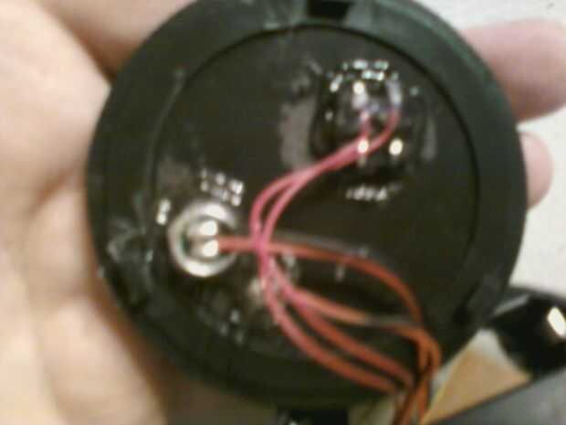 Inserte el micrófono en el orificio de 3/8 que es cerca del agujero para el LED de luz.  Pegamento caliente el micrófono en la parte posterior (o dentro) de la placa base.  Hacer lo mismo con el interruptor y la luz del LED.  Dejar enfriar a continuación, intente seco montaje de la cubierta de la base. quizás tenga que hacer algunos cortes arena para ajuste y bloqueo.