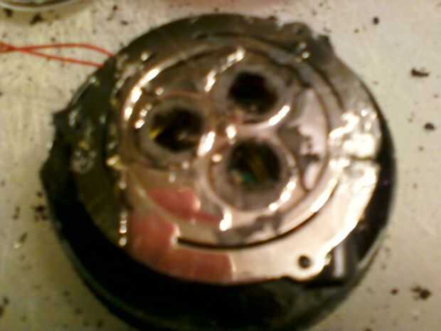 Ponga sólo un poco de pegamento caliente en 3 ó 4 puntos alrededor de la costura exterior donde se unen la carcasa exterior y la base principal. No necesita pegar la placa base a la unidad porque todavía debe deslizar en las ranuras y un leve giro del reloj será bloquearla.