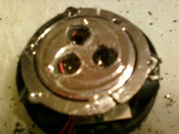 Todo está funcionando correctamente y ponerlo todo nuevo juntos. Asegúrese de que los cables de altavoces no obstaculizar la cáscara externa y la base.