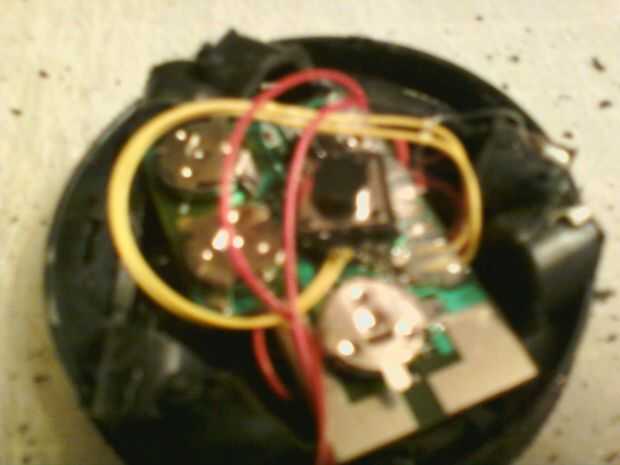 Ajuste el altavoz / botón de cúpula sobre la cosa brillante plata. Mientras se mantiene todo junto puso la cáscara externa sobre el conjunto. Debe venir juntos y todavía permitir que el botón operar. Si no recorte las fichas entonces seco ajuste otra vez.