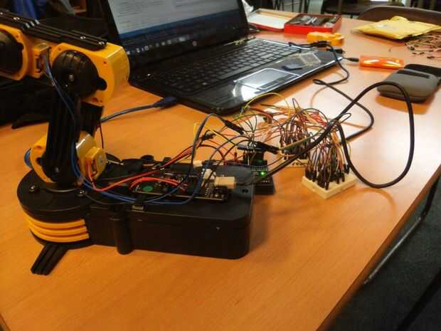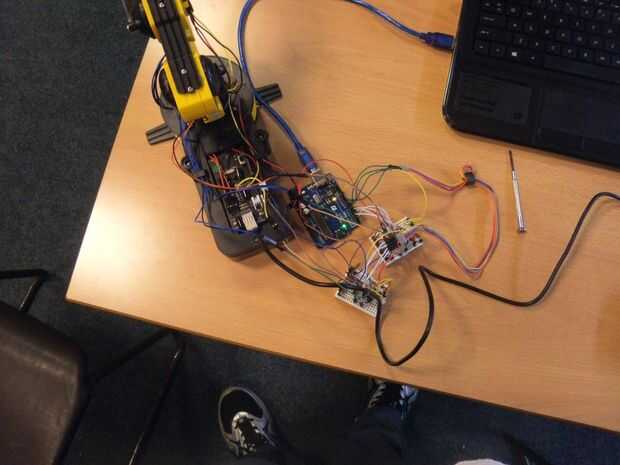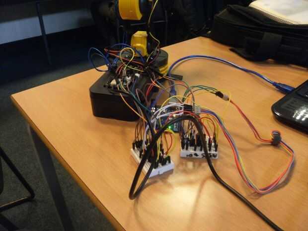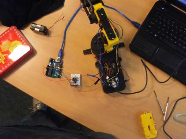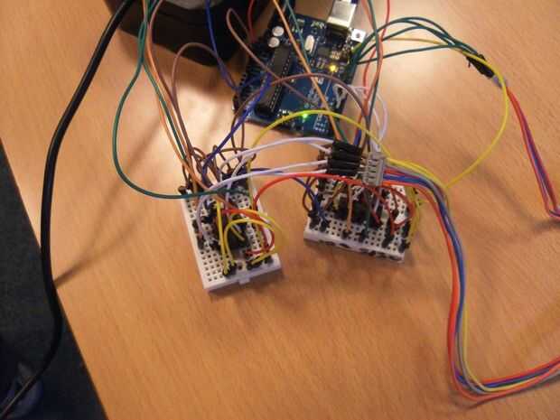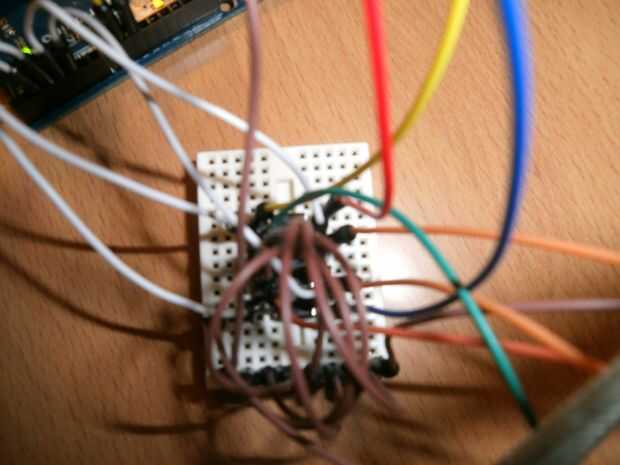 El siguiente paso fue controlar el robot con un arduino. Usé breadboards para hacer prototipos, entonces pude ver que todo era trabajo togethere.