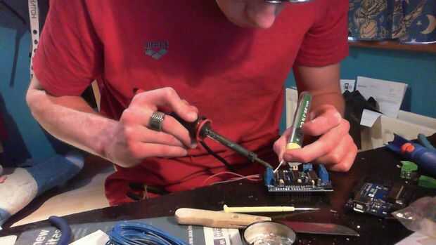 1. hackeado la placa de Arduino para luego puedo aceptar otro escudo con él en paralelo, pero eso significaba comprender cómo un 74HCT595 cierre de trabajo y re-escribir el código para el microcontrolador chip.