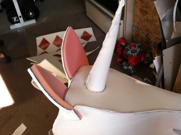 El cuerno del unicornio es sólo una pieza triangular de espuma. Simplemente me torcí un trozo para ver cuán grande debe ser la base, entonces corte un triángulo y caliente la pegan.