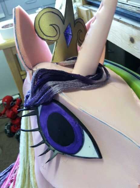 Me di cuenta de que en las ilustraciones cadencia tiene las pestañas en el párpado inferior. Cortar muy fino de espuma landau de algún retal y me rociaron ellos negro. Una vez seco, estaban calientes pegados al menor parte de ellos los ojos.
