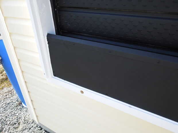 Los deflectores son dispositivos simples, hechos de una pieza rectangular de aluminio de la hoja y un marco de pequeño 3/4" por 3/4 tiras de madera. El marco de madera sólo tiene tres lados con el fin de no obstaculizar la circulación de aire en el deflector. Finalmente, la tira de flare en la parte superior está hecha de una esquina de yeso estaño de 45 grados y remachada a la hoja de aluminio. Todo está pintado de negro.