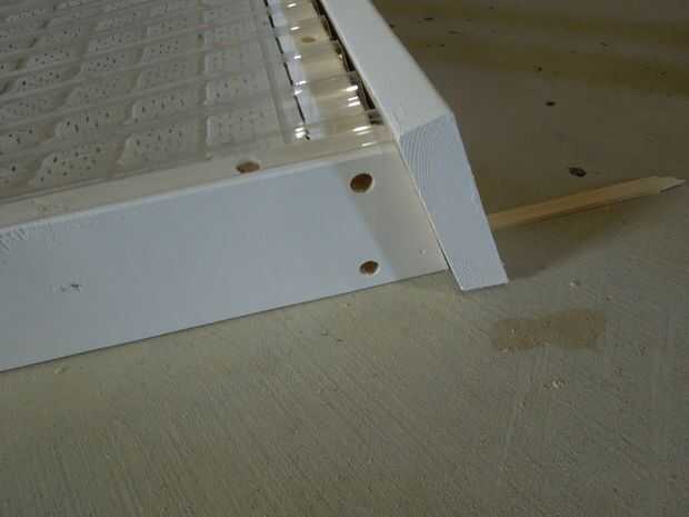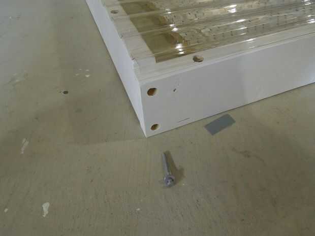 El marco entero está asegurado con pernos de 1/4". Primero se perfora un orificio de 3/4" para el sujetador a una profundidad de 1/2". Esto permite que la cabeza hexagonal y la arandela a rebajar en el bastidor. A continuación, es perforar un orificio de 3/16" el resto del camino a través.