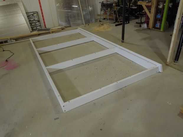 El marco es una estructura muy básica hecha de madera de 2 por 6 y enmarcado similar a una pared. La estructura consiste en dos placas horizontales continuos; uno superior y otro inferior, cuatro postes verticales y una tapa de goteo inclinado.