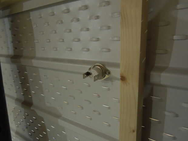 Un poco de pasta térmica fue puesto sobre la cabeza del interruptor de resorte y fue clavado a la parte posterior del amortiguador. La pasta térmica es la misma materia entre CPU de una computadora y su disipador de calor y asegura el buen contacto térmico entre el interruptor de resorte y el amortiguador. Un poco de sellador de silicona pura también podría usarse pero no funciona muy bien. El interruptor de resorte se monta en la parte posterior del amortiguador en lugar de la parte delantera para que la lectura de temperatura del interruptor no es afectada por la luz del sol sino por la temperatura del absorbedor.