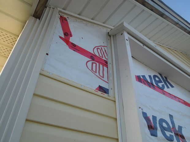 Unos trozos de metal intermitente fueron instalados en los laterales y parte superior del colector para evitar más filtraciones de agua detrás del colector.