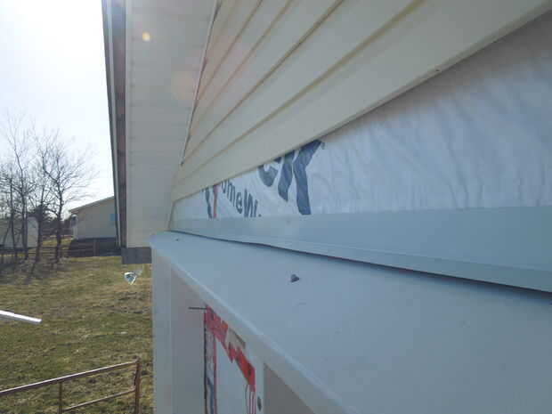 El revestimiento fue quitado de la fachada sur del garaje para unir el colector para el revestimiento de la pared plana. Desmontaje de revestimiento de vinilo es una tarea muy fácil y sencilla. Empiece por encima del nivel de la parte superior del colector y su camino hacia abajo. Usted puede comprar una herramienta especial gancho en forma de desbloqueo una tira de revestimiento del otro pero no es difícil hacerlo con sólo los dedos. Si el revestimiento es demasiado frío va a ser frágil y podrían partirse aparte de usted no tiene cuidado. Utilice un martillo y una "uña de gato" para quitar los clavos de la tira de fijación en cada pieza.