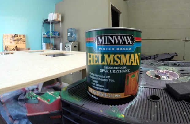 Cuando sabes que todo adapta a la forma que desee se le puede dar una de arena ya sea con una lijadora de acabado o bloque. Usé un uretano transparente spar para impermeabilizar la madera. Cubrí la parte superior e inferior de la cubierta con las 4 capas. De lijar con 220 entre las 2 últimas manos. No sé si esto era la mejor manera para sellar la madera, pero está funcionando hasta ahora.